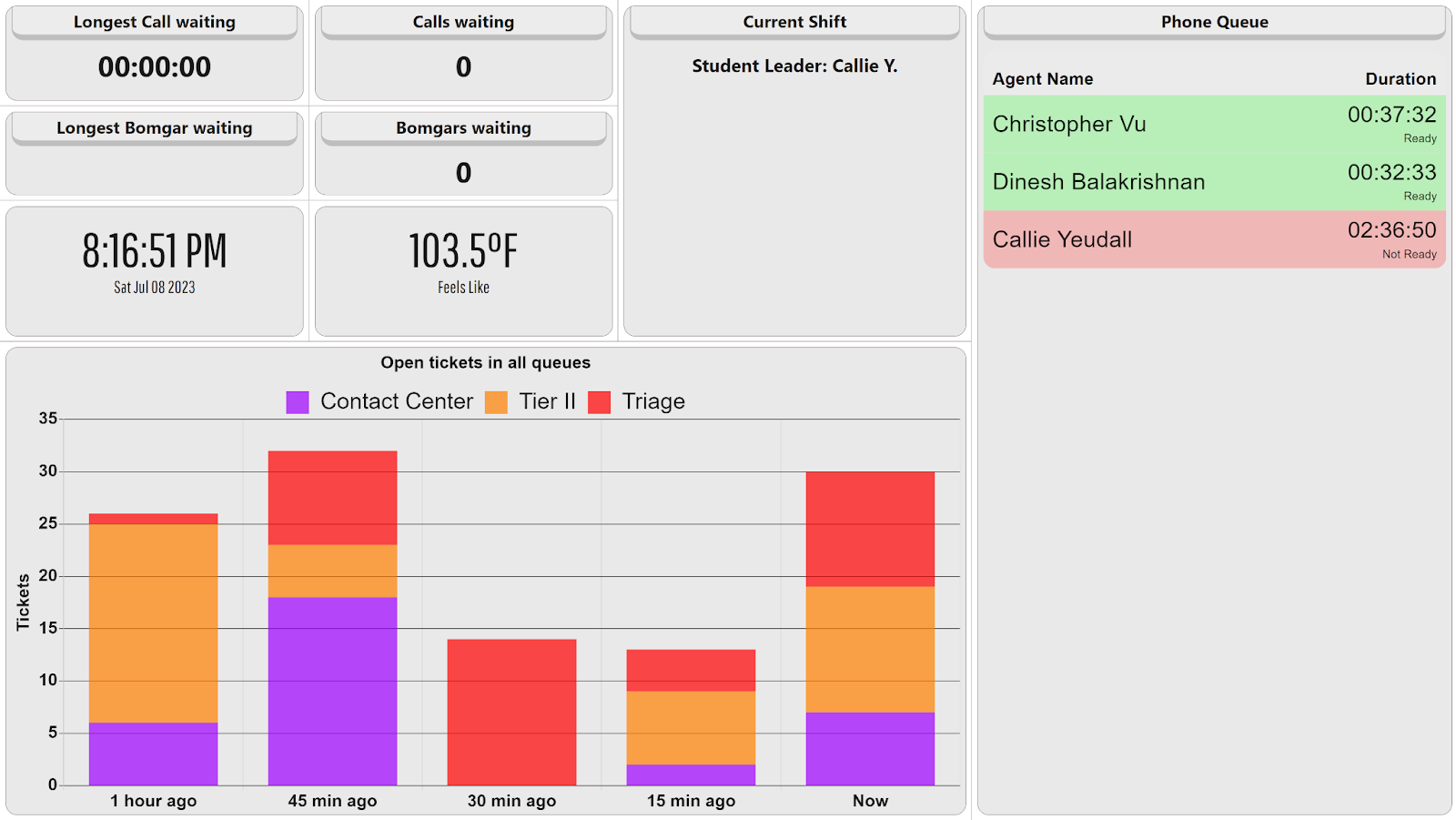 Custom built agent call queue, and metrics dashboard for TAMU Technology Services
